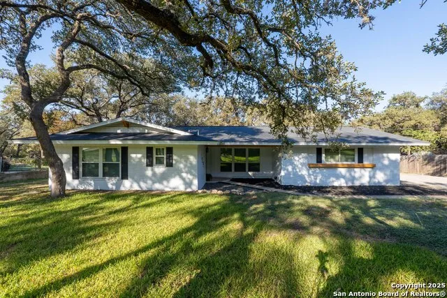 Remodeled Hollywood Park Beauty on .67 Acres! Located in one of the most sought-after neighborhoods, this stunning single-story home offers 3 bedrooms, 3 baths, and approximately 2,565 square feet of living space. Situated on a spacious lot with mature trees and backing to a greenbelt for added privacy, this home perfectly blends modern updates*The recent remodel showcases an amazing kitchen featuring a massive island with Calacatta quartz countertops, dual ovens, farm sink, wine refrigerator, and all-new cabinetry. A separate coffee/wet bar adds function* Enjoy new luxury vinyl plank flooring throughout and fresh interior and exterior paint*The home includes numerous upgrades, including a new roof (2020), aerobic septic system (2017), energy-efficient windows (2018), water softener (2016), one new HVAC (2021), ductwork (2022), dishwasher (2023), and blown-in insulation*The primary suite is spacious with a bay window overlooking the back yard*The primary bath is a relaxing retreat with dual sinks, a free-standing soaking tub, and a walk-in shower with rainhead*The home also features dual master suites for flexibility. A study can easily convert to a fourth bedroom if needed. Step outside to a covered patio and expansive multi-level deck (36' x 27') - perfect for entertaining or relaxing while overlooking the large, private yard, which offers plenty of room for a pool or casita*Residents of Hollywood Park enjoy exceptional community amenities, including a pool, splash pad, kiddie pool, playground, tennis and sports courts, volleyball area, clubhouse, and covered pavilion. Served by highly rated NEISD schools, this home offers the perfect combination of location and lifestyle.